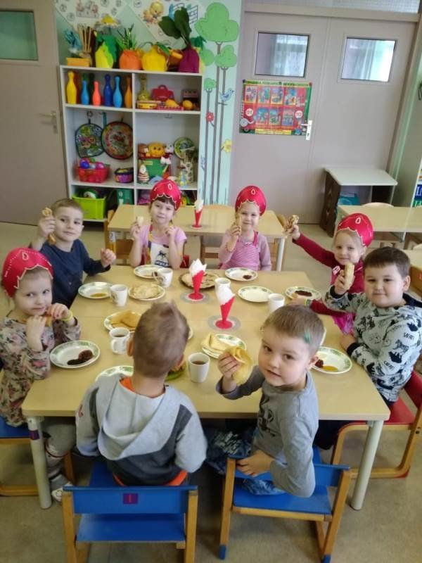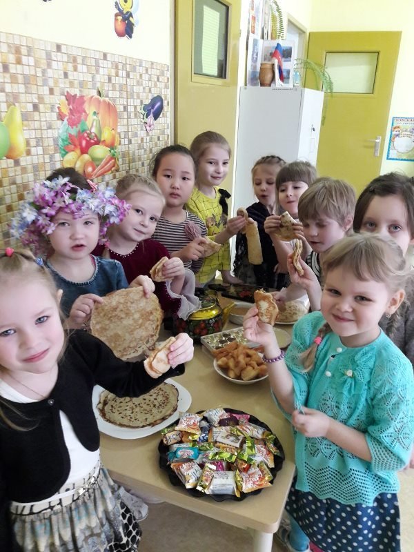 Дети принимали активное участие в гулянье, переняв общую атмосферу праздника и веселья. С восторгом ребята прогоняли Зимушку-зиму и с радостью встречали Красавицу Весну. Мы танцевали, играли, смеялись от души. После игр, плясок и забав наступила пора угощаться блинами. Все остались сытыми и довольными!