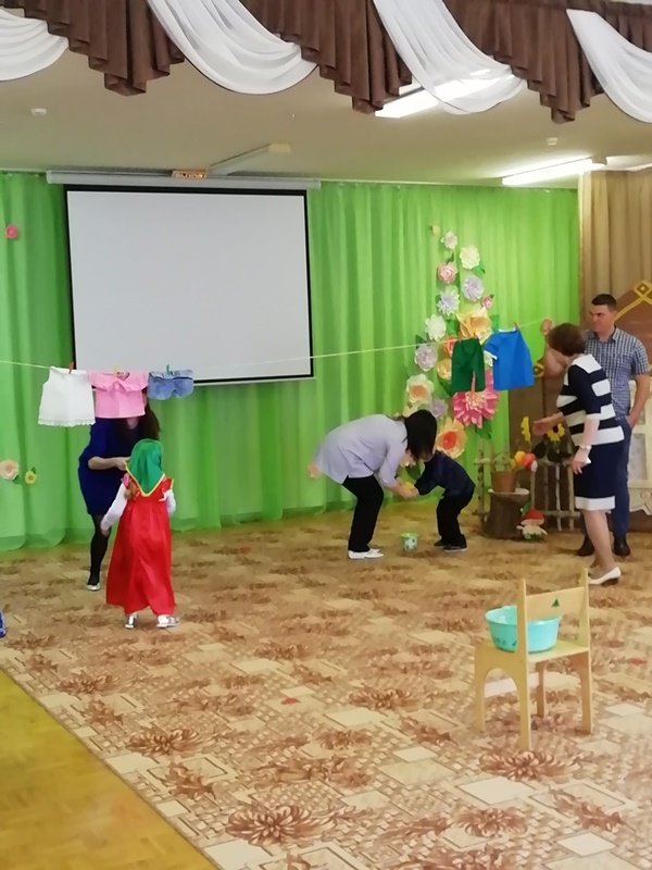 Для бабушек тоже приготовили стихи и песни. Интересно и с юмором прошли игра "Наряди бабушку", а для мам конкурс "Большая стирка". В завершении праздника дети пригласили любимых мамочек на танец.