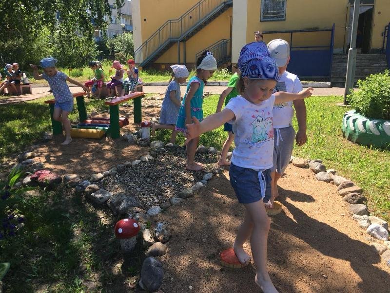 Особое внимание наш детский сад уделяет здоровьесбережению воспитанников особенно в летней период. "Тропа здоровья"- это место, где ребенок активно укрепляет свое здоровье, а основными средствами оздоровления выступают естественные факторы: солнце, воздух, вода. "Тропа здоровья" предупреждает возникновение плоскостопия, улучшает координацию движений, укрепляет организм физически и эмоционально и приобщает дошколят к здоровому образу жизни. Кроме того, она способствует улучшению настроения детей и является веселым видом времяпрепровождения на свежем воздухе.