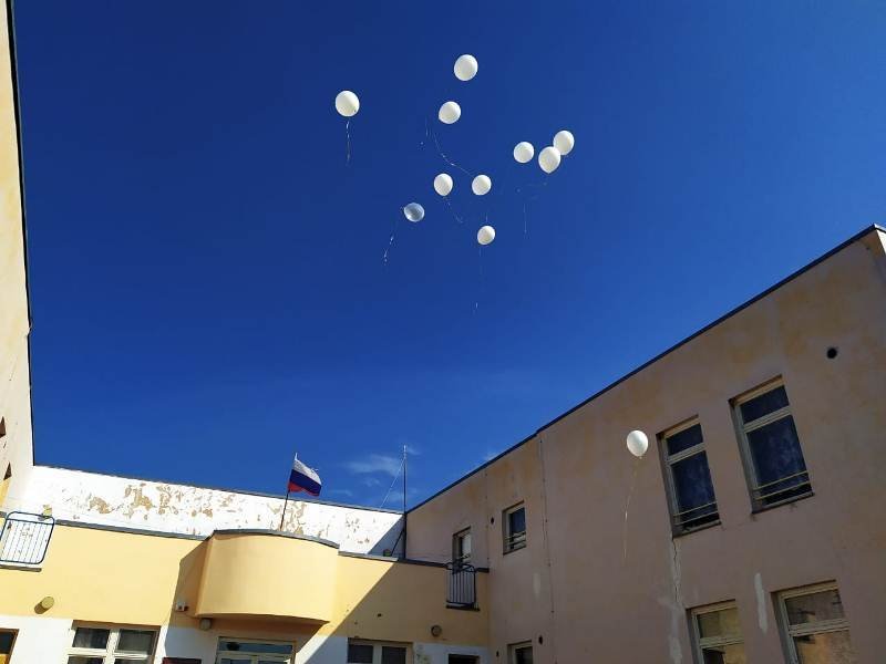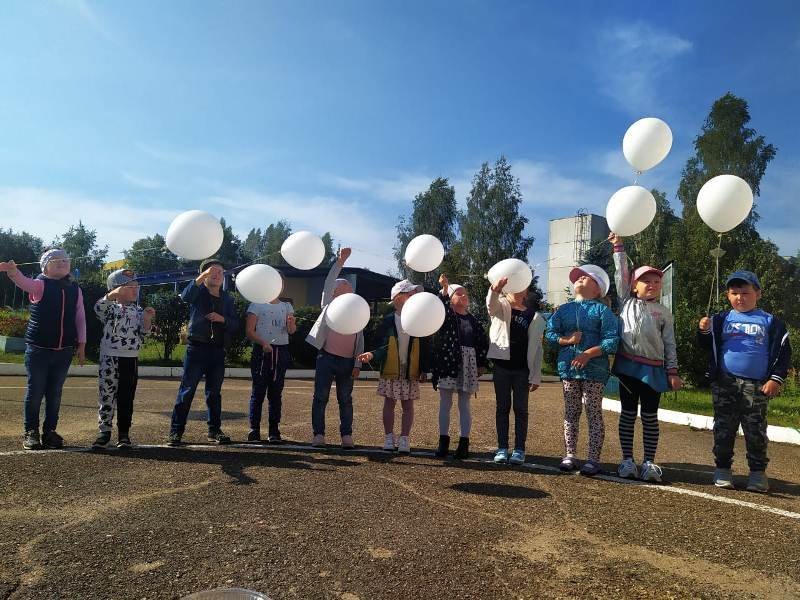 На прогулке вместе с ребятами отпустили в небо воздушные белые шары – символы невинных детских душ.
