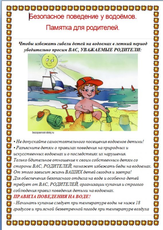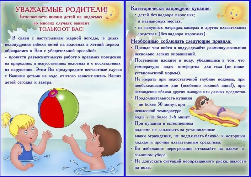 Памятка родителям о мерах безопасности детей на водоемах