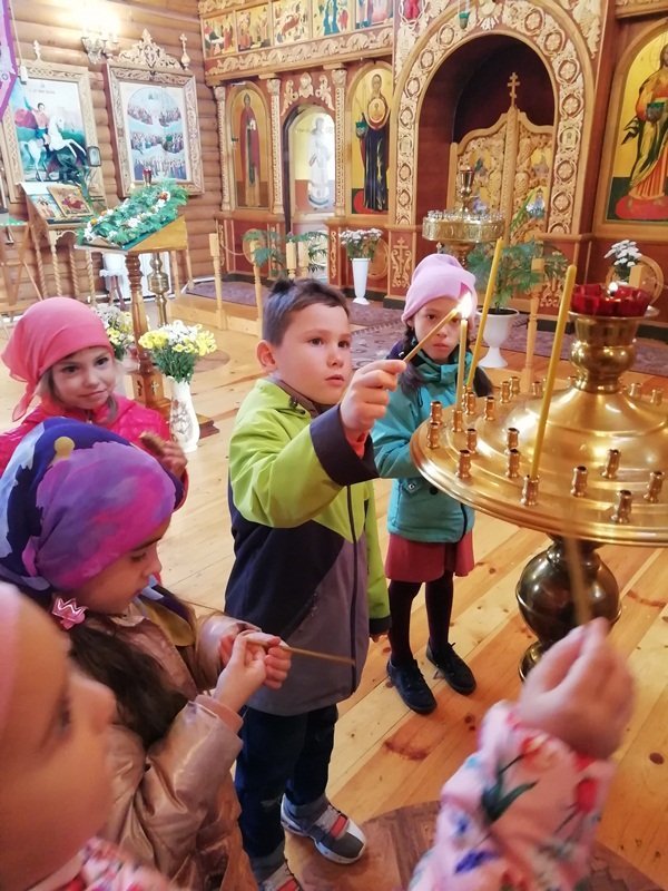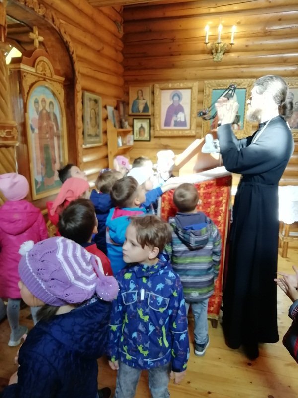 В рамках плана взаимодействия ДОУ с храмом Александра Невского воспитанники подготовительной к школе группы №6 нашего детского сада посетили храм. Их тепло встретил настоятель храма отец Владимир. Он рассказал ребятам о князе Александре Невском, об устройстве храма и о правилах поведения в нем, о молитвах, об алтаре. Ребята внимательно рассматривали изображения святых и ангелов на иконах. Отец Владимир раздал всем ребятам свечи, которые они поставили на подсвечники перед иконами. Встреча завершилась чаепитием, которое организовал отец Владимир. Спасибо ему огромное за познавательную беседу и угощения!
