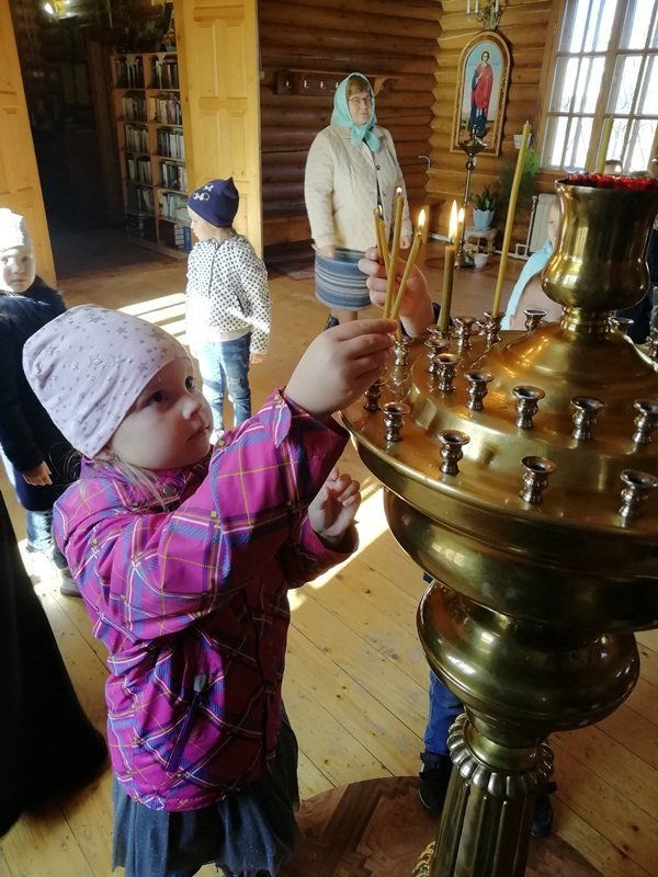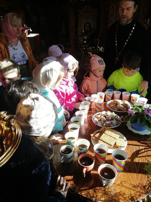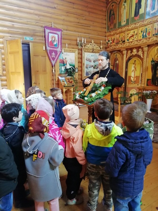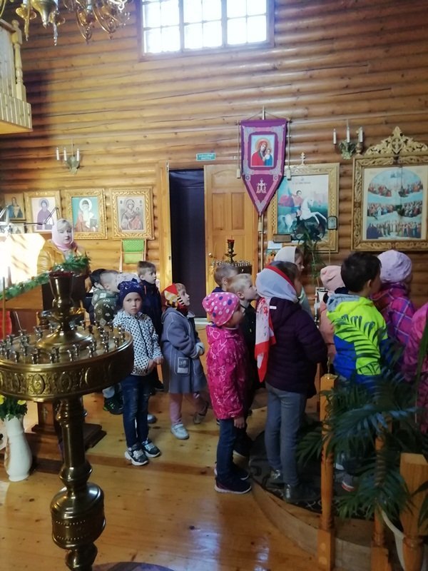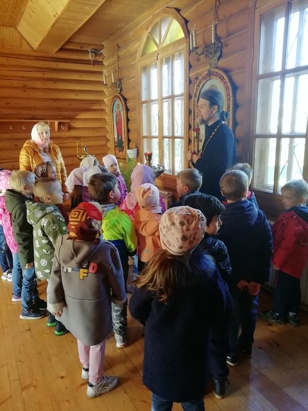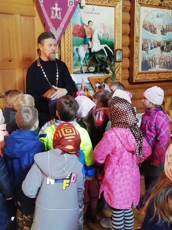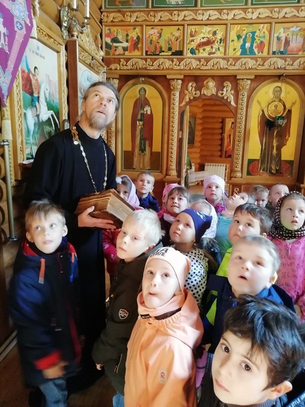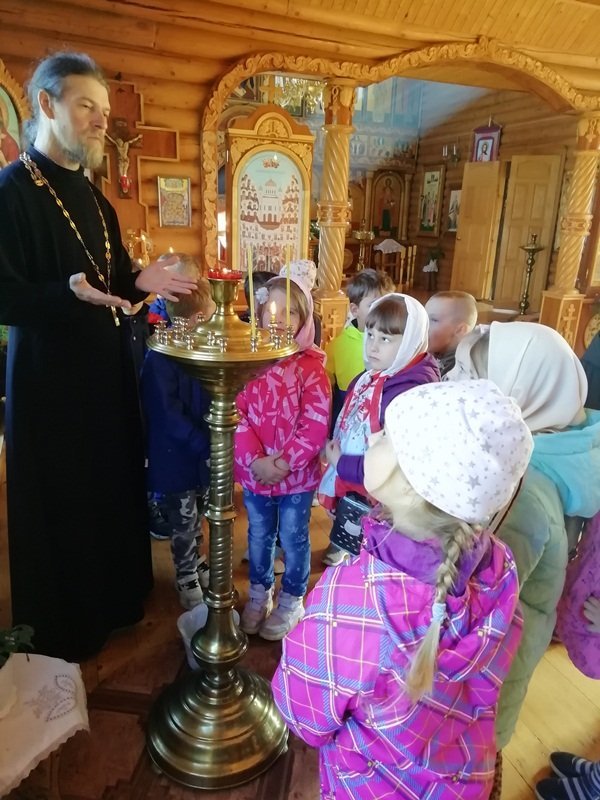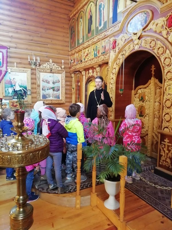 В рамках плана взаимодействия ДОУ с храмом Александра Невского воспитанники подготовительной к школе группы "Ягодки" нашего детского сада посетили храм. Их тепло встретил настоятель храма отец Владимир. Он рассказал ребятам о князе Александре Невском, об устройстве храма и о правилах поведения в нем, о молитвах, об алтаре. Ребята внимательно рассматривали изображения святых и ангелов на иконах. Отец Владимир раздал всем ребятам свечи, которые они поставили на подсвечники перед иконами. Встреча завершилась чаепитием, которое организовал отец Владимир. Спасибо ему огромное за познавательную беседу и угощения!