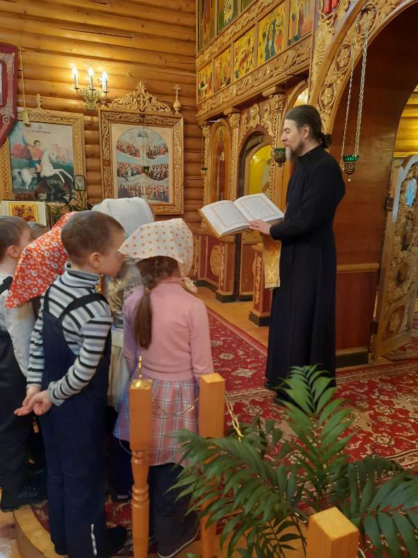 В рамках плана взаимодействия ДОУ с храмом Александра Невского воспитанники подготовительной группы нашего детского сада посетили храм. Их тепло встретил настоятель храма отец Владимир. Он рассказал ребятам о князе Александре Невском, об устройстве храма и о правилах поведения в нем, о молитвах, об алтаре.