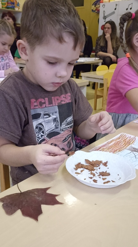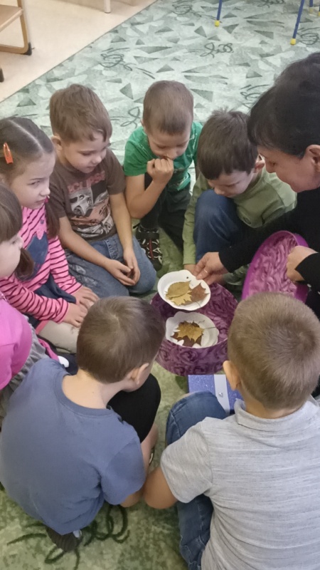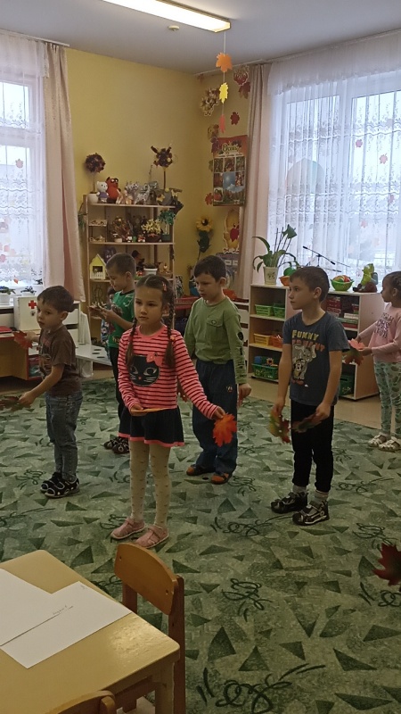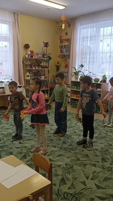 Наблюдение на прогулке за опадающими листьями с деревьев, сбор листьев разной формы и окраски, беседы об осени, слушали музыкальные произведения: "Времена года. Осень" А. Глазунова. "Времена года: Осень" Н. Римский-Корсакова, "Осенняя сказочка".