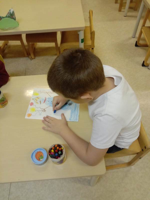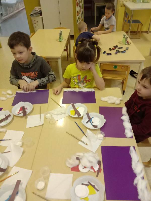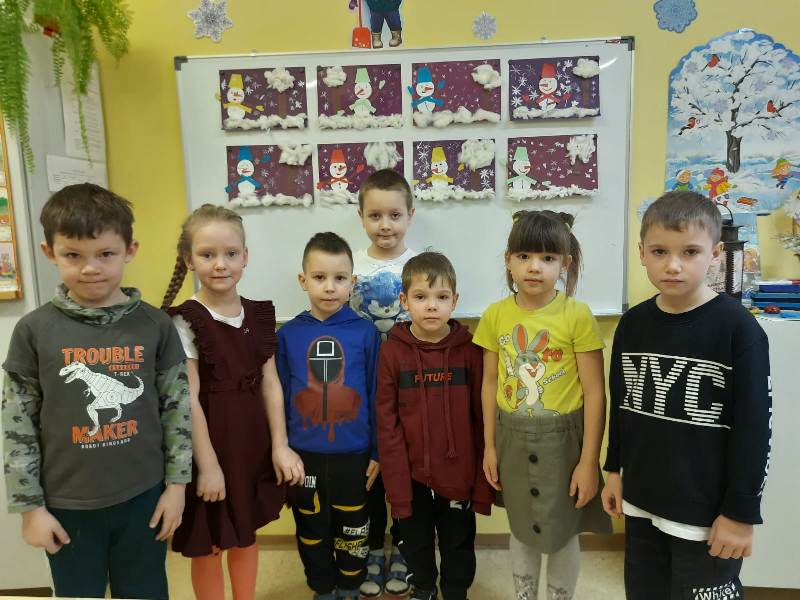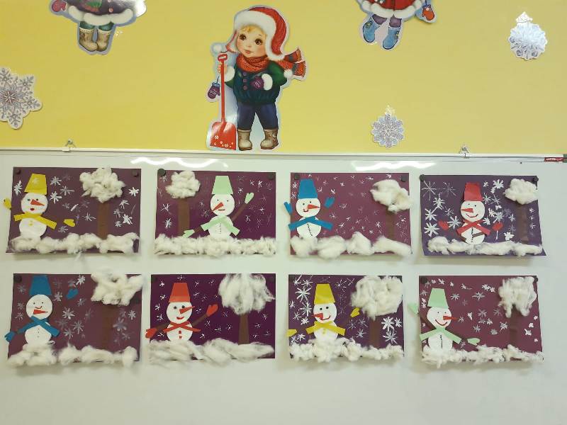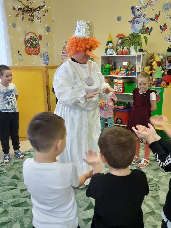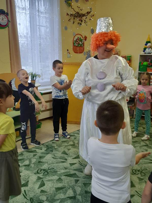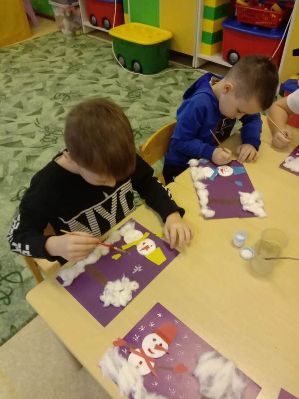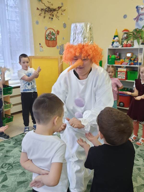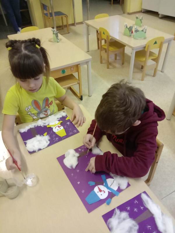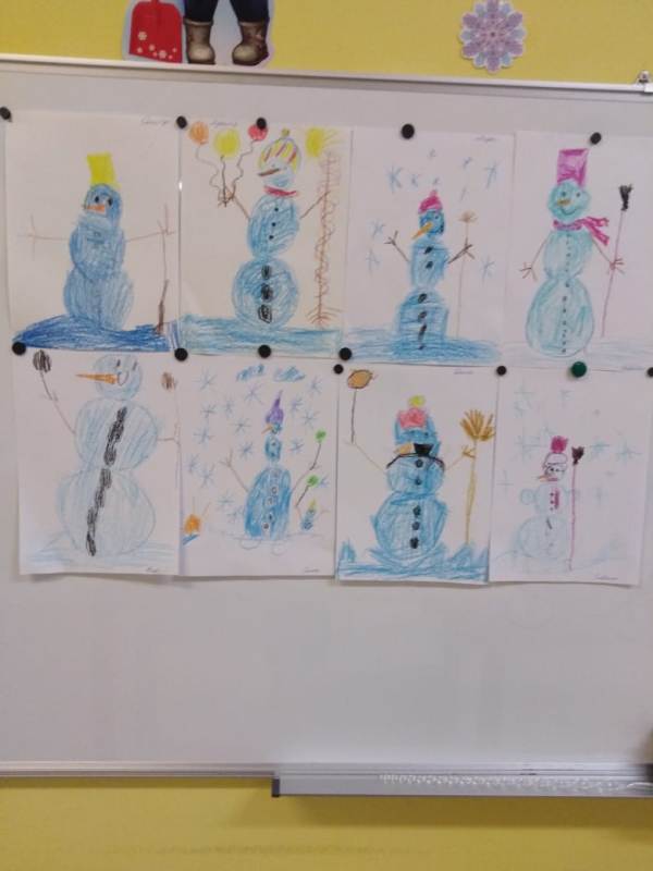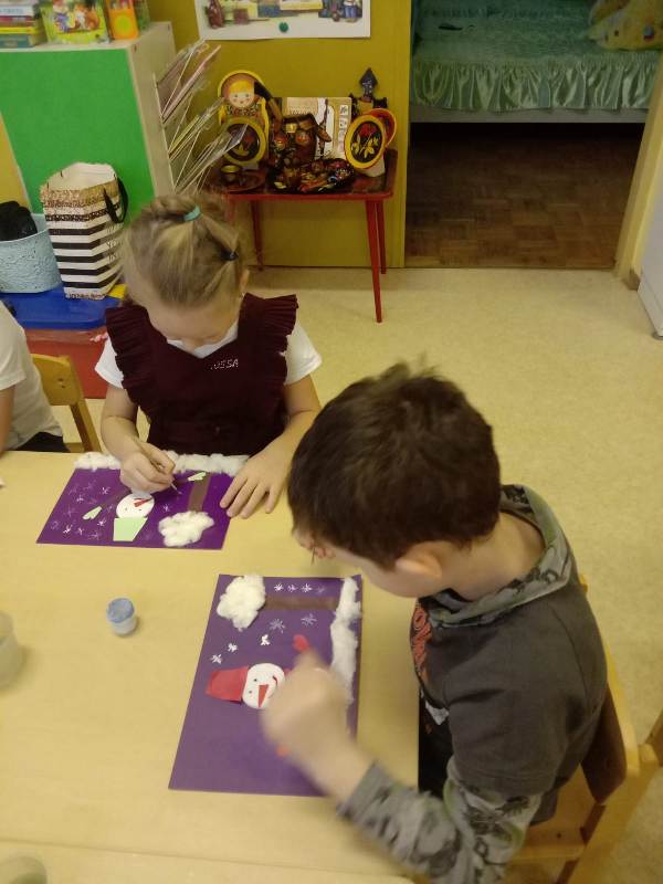 В гости к ребятам подготовительной группы №5 пришёл Снеговик он с удовольствием играл с ребятами в игры «Снег руками нагребаем, лепим, лепим ком большой...», «Зимушка-зима», и другие, загадывал загадки ребятам и танцевал вместе с ними. Ребята вместе с родителями с удовольствием мастерили поделки .Картон, бумага, клей и немного хорошего настроения позволили им сделать самых разнообразных и симпатичных снеговичков. Ребята с удовольствием рисовали и мастерили.