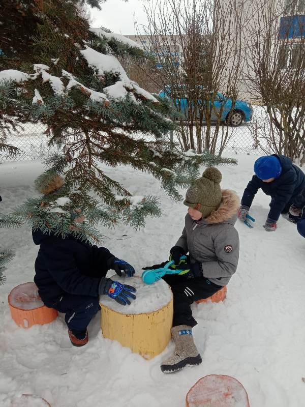 Сколько радости и восторга вызвал снег у ребятишек, дал нам возможность поиграть, слепить снеговиков, узнать подробно свойство мокрого снега (лепиться, тает).
