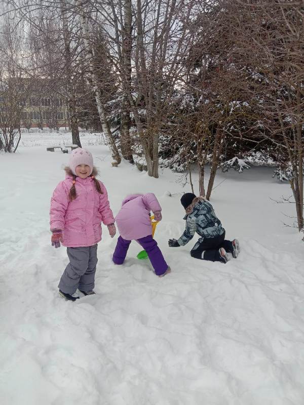 Придя в садик дети не могли дождаться окончания занятий, чтобы быстрее пойти на прогулку. У многих ребят получились забавные снеговики, другие ребята принялись катать снежные комочки, лепить снежки и кидать их, успели и поваляться в снегу.