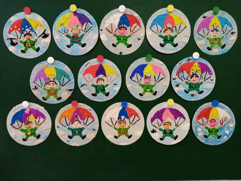 Свои впечатления ребята выразили в рисунках "Портрет моей любимой семьи", пластилинографии "Парашютист", "Наша армия сильна".