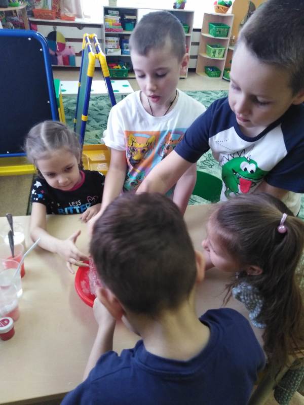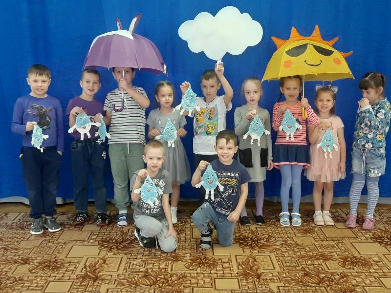 Дети подготовительной группы №5 «Божья коровка» вместе с воспитателями Масанкиной Т.Б., Воробьевой Г.Л. начали с утреннего умывания, детям прочитали сказки Т.А. Шарыгиной «Девушка Реченька», «Путешествие Облачка». Было проведено занятие на тему «Вода. Какая она?», провели беседу о том, какое место вода занимает в окружающей среде, какое значение имеет для людей и как нужно ее беречь. Ребята узнали о круговороте воды в природе. Как настоящие учёные, ребята проводили опыты с водой «Вода-жидкость», «Прозрачность воды», «Вода может менять цвет», «У воды нет вкуса». Вспомнили дети о разных состояниях воды и условиях их изменений: холоде и тепле. День опытов и экспериментов с водой прошёл интересно и увлекательно. Дети испытали радость открытий. Ребята изготовили аппликацию капельки.