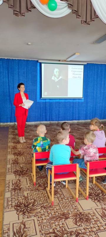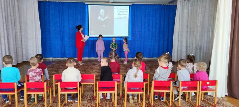 6 июня в детском саду "Солнышко" прошел Пушкинский день, посвященный дню рождения великого русского поэта А.С. Пушкина. Дети посетили выставку книг, организованную в методическом кабинете ДОУ, великого русского поэта, вспомнили сказки Пушкина, рассматривали иллюстрации к сказкам. Просмотрели презентацию "А.С. Пушкин", из которой узнали о жизни поэта и его творчестве. Участвовали в видео-викторине "По дорогам сказок А.С. Пушкина", многие строчки из сказок читали наизусть. Участвовали в конкурсных заданиях "У Лукоморья", играли в игру "Кто лишний", "Собери картинку". День получился ярким и познавательным.