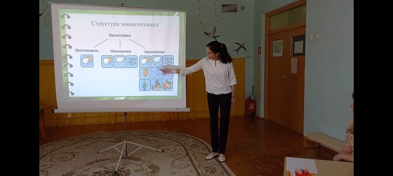 В ходе мастер-класса воспитатели познакомили коллег с историей возникновения мнемотехники, с видами мнемотехники (народная (бытовая), классическая мнемотехника, педагогическая мнемотехника, которые используют в работе с детьми по развитию речи.