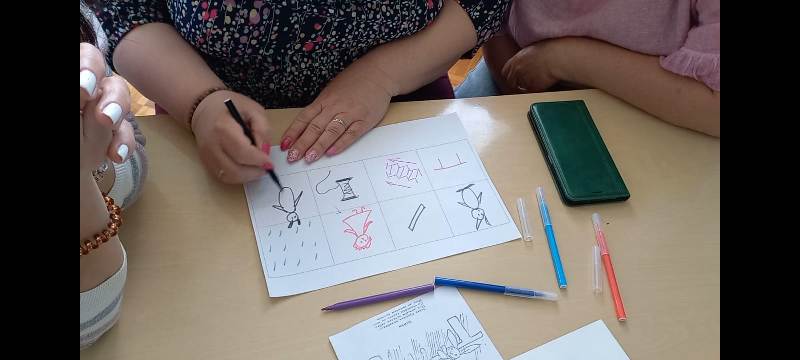 Педагоги активно принимали участие в практикуме, разделились на две команды: составили мнемотаблицу к сказке, соблюдая правильную последовательность, опираясь на составленную таблицу, вспомнили сюжет сказки. Каждой команде было предложено «зашифровать» стихотворение в мнемотаблицу и предложить другой команде угадать стихотворение.