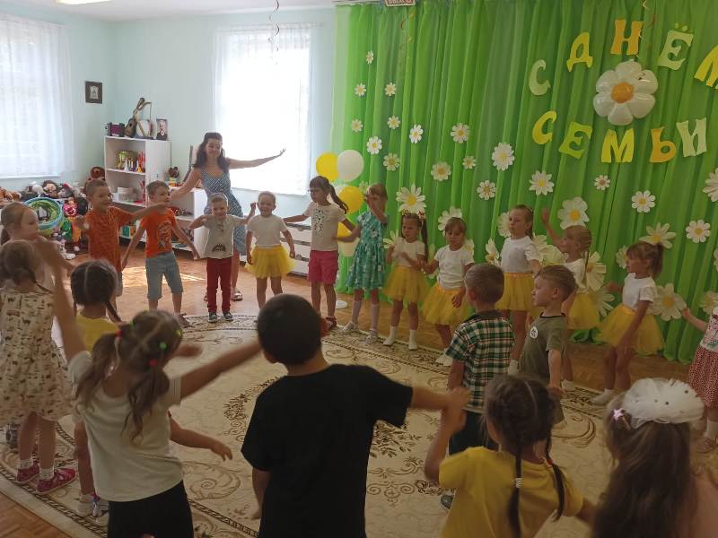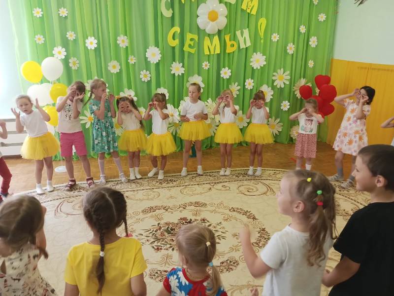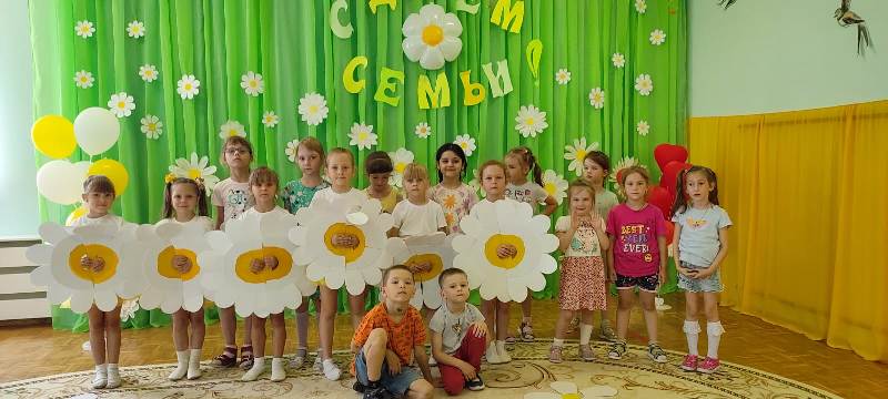 7 июля прошло в нашем детском саду прошло развлечение "С Днем Семьи, Любви и Верности!". В гости к ребятам пришел сказочный герой "Ромашка", ребята с ним играли в подвижные игры, отгадывали загадки и собирали полевые цветы – ромашки, рассказывали стихи и пели песни о семье, добре, дружбе. Дети остались довольны и получили положительные эмоции от праздника.