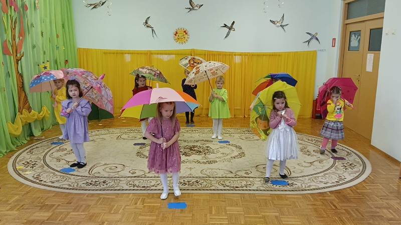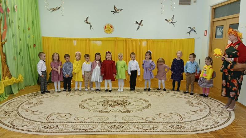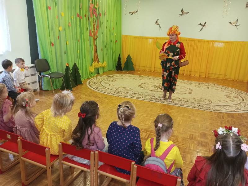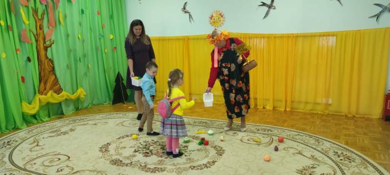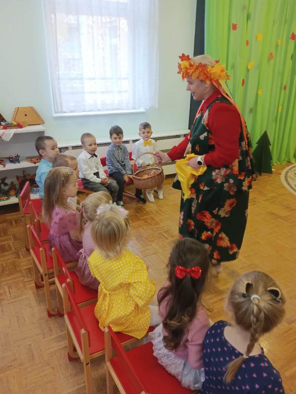 К детям приходила осень, они с ней играли, танцевали, пели песни. Осень на прощание подарила всем детям вкусные подарки.