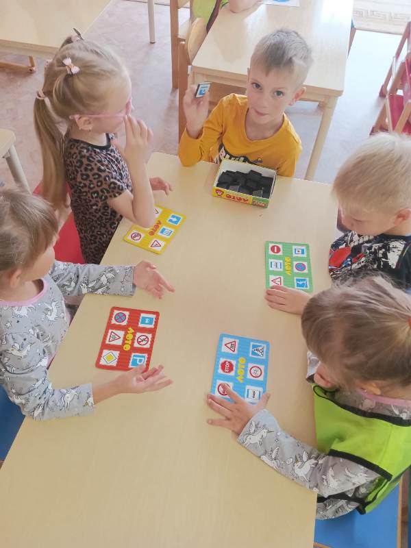 Дети закрепляли знания о дорожных знаках и их классификации, правила безопасного поведения на улицах и в транспорте, правила перехода перекрестка.