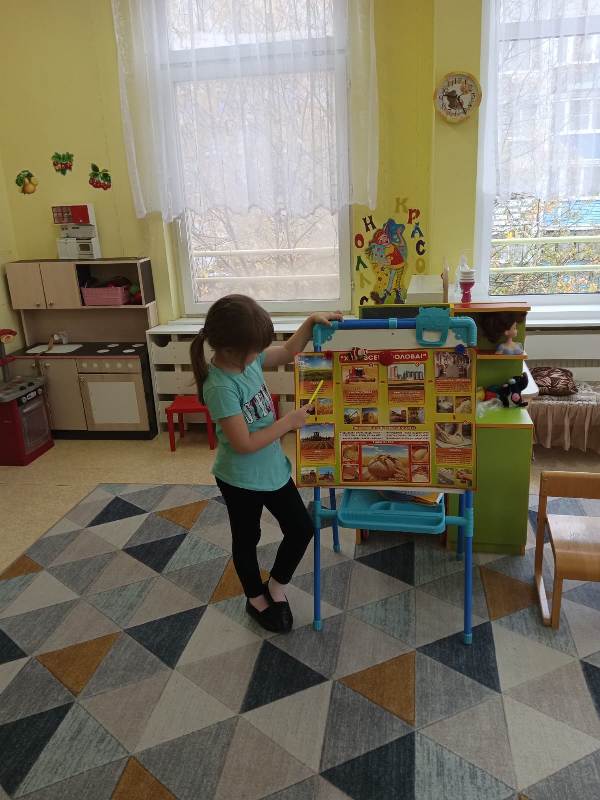 Играли в такие игры, как: «Кто больше назовет хлебобулочных изделий», «Назови ласково», «Скажи, какой бывает хлеб», «Собери цепочку, как хлеб на стол пришел»; вспомнили правила обращения с хлебом.