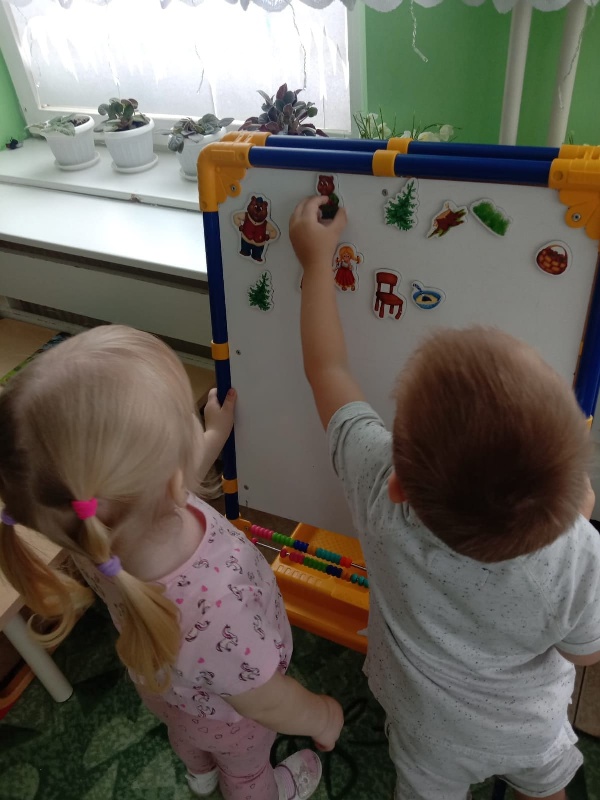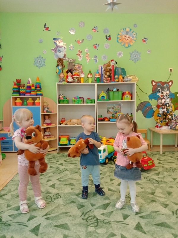 В младшей группе "Карапузы" провели с детьми ряд интересных и увлекательных мероприятий. В доступной и игровой форме рассказали детям о жизни медведей (особенности внешнего вида, повадки, поведение в природе…). Вспомнили в каких знакомых детям сказках встречается медведь. Дети зажигательно исполнили танец «Мишка с куклой громко топают». В качестве своеобразного закрепления данной темы мы показали сказку, по мотивам русской народной сказки «Три медведя».